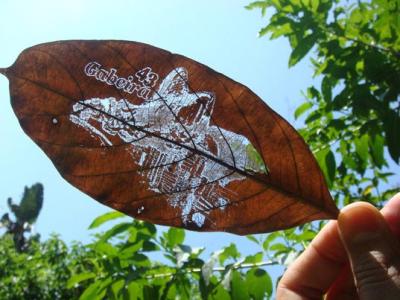 激光打標雕刻樹葉